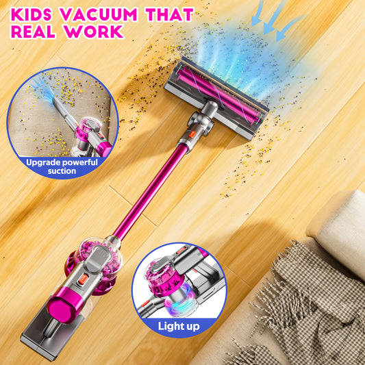 4-in-1 Kids Vacuum That Really Work, Toddler Pretend Play Cleaning Toy Set W/ Light & Sound, Interactive Toy Cleaner Birthday Idea for 2 3 4 5 6+ Year Girl Boy